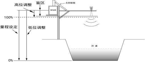 注:使用雷達物位計時,務(wù)必保證最高水位不能進入測量盲區(qū)。